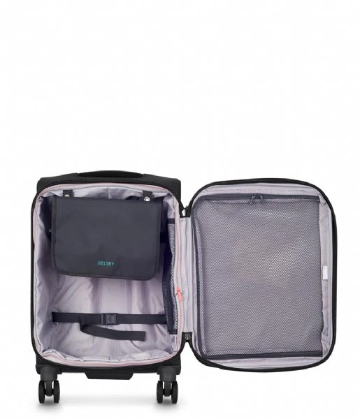Deze stijlvolle handbagage koffer is gemaakt van polyester met een binnenvoering van nylon en is perfect voor jouw korte en lange reizen in het binnen- en buitenland. De zachte koffer heeft een inhoud van 42 liter en is 55 centimeter hoog. De koffer heeft een tsa cijferslot voor extra veiligheid tijdens het reizen. Deze koffer is perfect te combineren met de andere reisaccessoires uit de Delsey collectie.