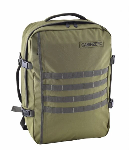 De Military Cabin Backpack 44 L is een rugtas van CabinZero voor reizigers. De rugtas heeft een inhoud van 44 liter en is uitgevoerd in waterafstotend polyester. Het 44 liter formaat van de tas is voornamelijk geschikt voor mannen. De tas heeft twee ritsvakken aan de binnenzijde en een open vak waar kleine essentials in bewaard kunnen worden zoals een paspoort. Ook biedt de binnenkant ruimte voor een 17 inch laptop in het laptopvak. De schouderbanden zijn op elke gewenste lengte verstelbaar. Bovendien heeft de tas een comfortabel gewatteerd rugpand. Ook kan de CabinZero rugzak om de heupen en borst vastgemaakt worden middels twee banden. De code op de tas maakt het mogelijk deze aan te melden op okoban.com en de tas hier op te registreren. Okoban is een platform wat gebruikt wordt door vliegvelden en vliegmaatschappijen om verloren bagage te traceren. Wanneer de tas verloren raakt, kan de vinder jouw persoonlijke code invullen en terugsturen naar de juiste eigenaar. Dankzij het waterafstotende materiaal blijven spullen in de Military Cabin Backpack 44 L droog tijdens elke trip! Deze rugzak is ideaal ontworpen zodat deze als handbagage mee mag in het vliegtuig.